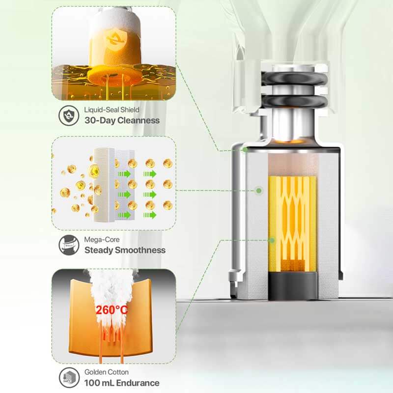 Built-in mesh coil with iCosm Code 2.0 for longer-lasting performance and consistently pure flavour.